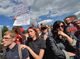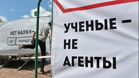 Митинг "За науку и образование" прошел на Суворовской площади. Плакат с надписью "Ученые не агенты".