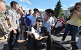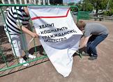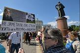 Митинг "За науку и образование" прошел на Суворовской площади. Участник митинга с плакатом "Фальшивых диссертантов вон из науки, фальшивых депутатов вон из Думы".