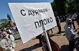 Участники митинга "За науку и образование" с надписью на плакате "С дураком плохо", на Суворовской площади.