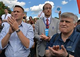 Митинг "За науку и образование" прошел на Суворовской площади. Оппозиционер, председатель партии "Партия прогресса" Алексей Навальный (справа) во время митинга.