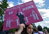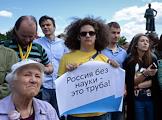 Митинг "За науку и образование" прошел на Суворовской площади. Участник митинга с плакатом "Россия без науки-это труба".