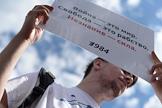 Митинг "За науку и образование" прошел на Суворовской площади. Участник митинга с плакатом "Доколе?"