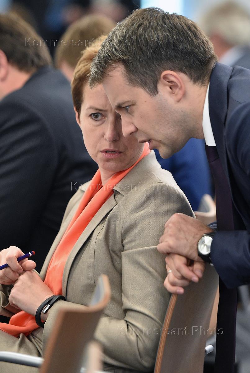 Рабочая поездка председателя правительства России Дмитрия Медведева в Казань. Заместитель министра экономического развития и глава Росимущества Ольга Дергунова (слева) и министр связи и массовых коммуникаций Николай Никифоров (справа) во время заседания президиума Совета при президенте России по модернизации экономики и инновационному развитию России. Заседание прошло в городе Иннополисе.