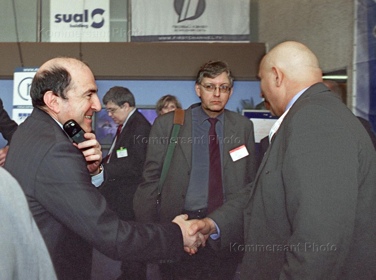 Предприниматель Борис Березовский (слева) и депутат Государственной Думы России, член фракции КПРФ Василий Шандыбин (справа) во время шестого российского экономического форума, который прошел в Конгресс-центре Королевы Елизаветы.