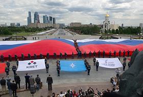 Парад Флагов и церемония закладки Березовой рощи на Поклонной горе в честь 70-летия Великой Победы.