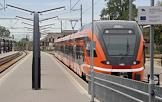 Балтийкий вокзал. Пригородный поезд производства Швейцарии у платформы.