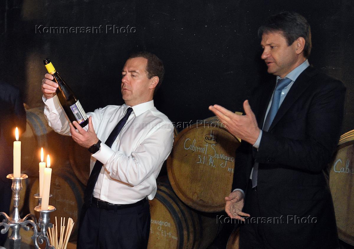 Рабочая поездка председателя правительства России Дмитрия Медведева в Крым. Председатель правительства России Дмитрий Медведев во время посещения сельскохозяйственного производственного кооператива "Терруар" в селе Родное в окрестностях Ялты.
