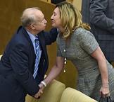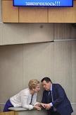 Заместитель председателя комитета Государственной думы России по культуре Зоя Степанова (cлева) и председатель комитета ГД России по бюджету и налогам Андрей Макаров (справа) на пленарном заседании Госдумы России.