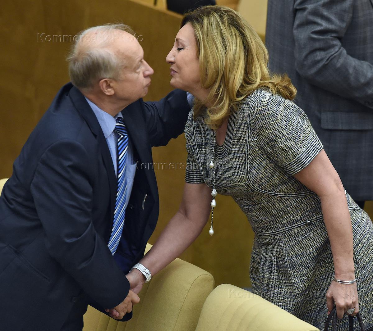 Заместитель председателя комитета Государственной думы России по культуре Зоя Степанова (cлева) и председатель комитета ГД России по бюджету и налогам Андрей Макаров (справа) на пленарном заседании Госдумы России.