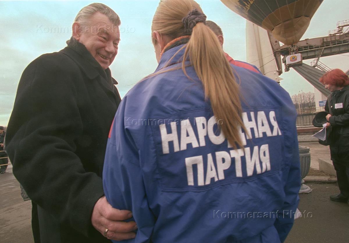 Председатель ЦК "Народной партии РФ" Геннадий Райков (слева) с участниками массовой акции-митинга, организованной представителями комитета московского областного регионального отделения "Народная партия Российской Федерации". Акция прошла с целью поддержки российской космонавтики и иных высокотехнологических производств на площадке у павильона "Космос" на ВВЦ.