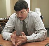 Chairman of the State Duma Investors Rights Commission Sergey Generalov is interviewed in his office.