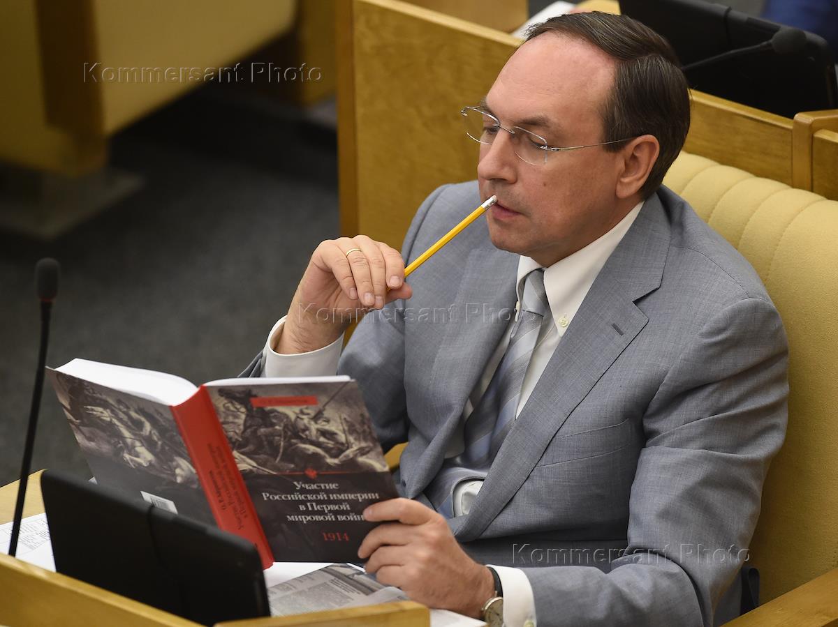 Председатель комитета Государственной думы России по бюджету и налогам Андрей Макаров во время заседания Госудмы.