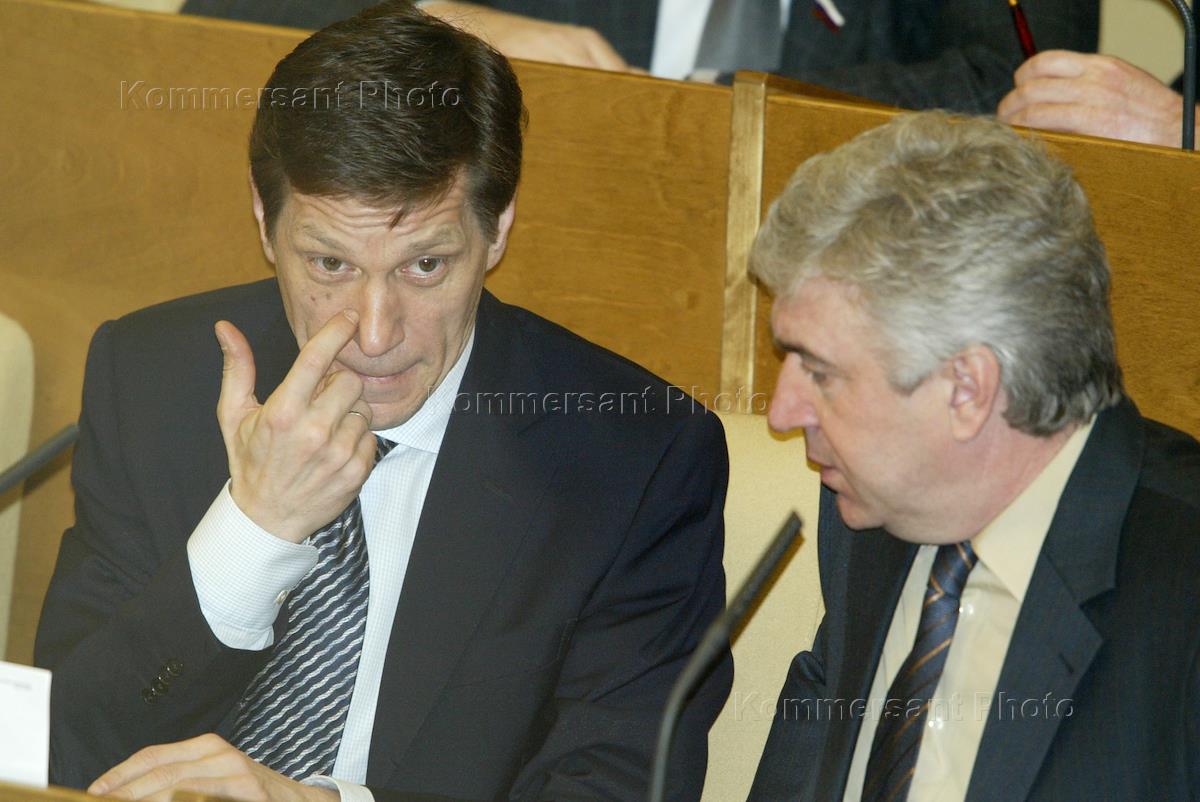 Член Комитета Государственной Думы России по бюджету и налогам Валерий Зубов (слева) на очередном думском заседании.