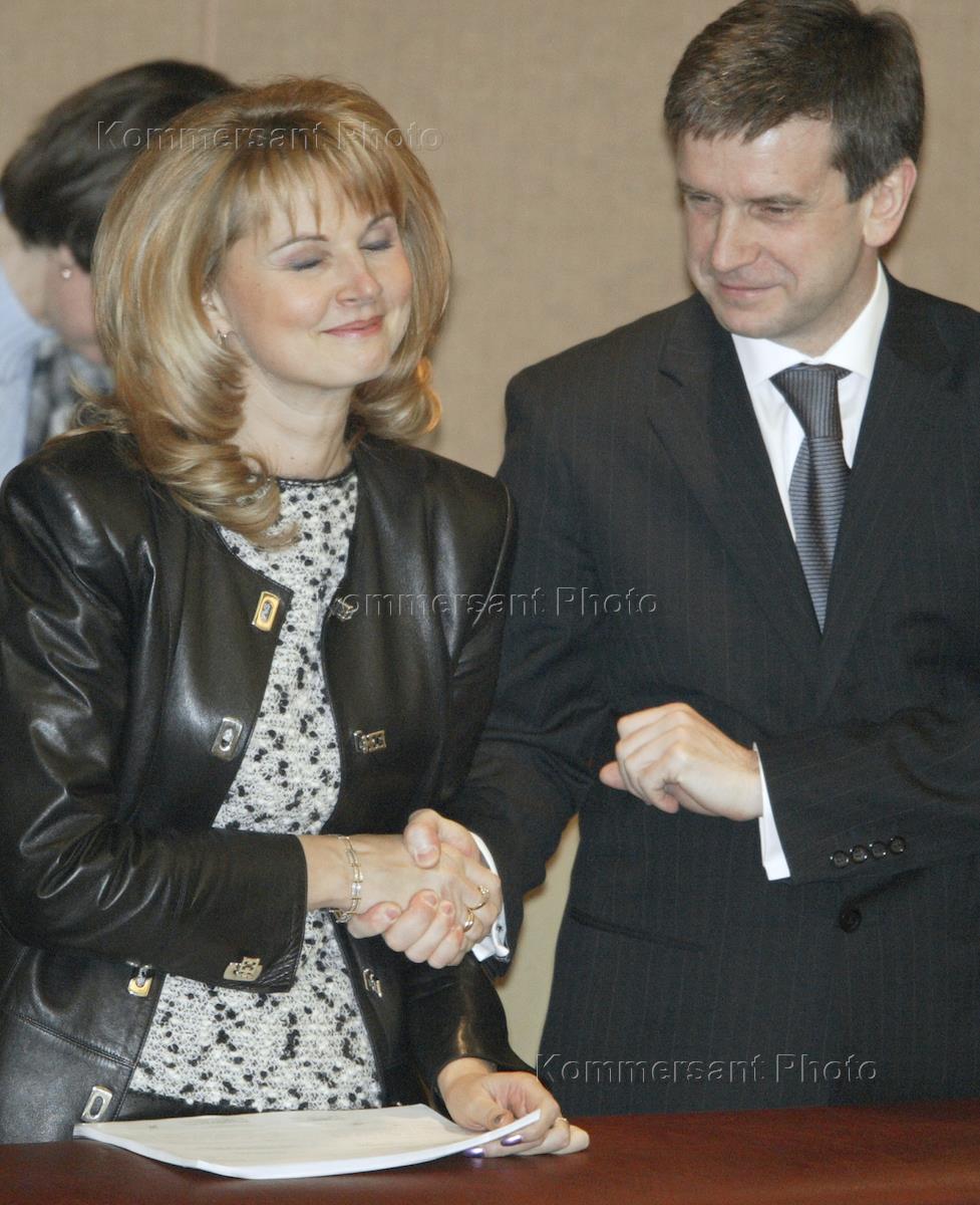 Russian Deputy Finance Minister Tatyana Golikova (left) and chairman of the Russian Pensions Fund Mikhail Zurabov (right) attend a session of the State Duma.