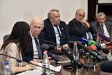 Американский биолог, лауреат Нобелевской премии по физиологии и медицине 1962 года Джеймс Уотсон (второй слева) и президент Российской академии наук Владимир Фортов (в центре) во время церемонии возращения Джеймсу Уотсону Нобелевской медали, которую выкупил на аукционе основатель USM Holdings Алишер Усманов.