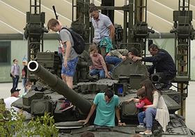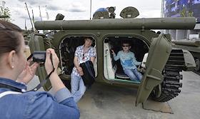 Международный военно-технический форум "Армия-2015" в парке "Патриот". Посетители форума во время осмотра боевой военной техники.