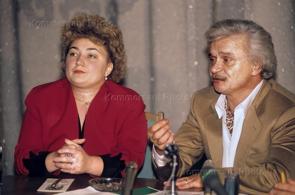 Президент "Чара-банка" Владимир Рачук и совладелица "Чара-банка" Марина Францева во время пресс-конференции в здании своего банка.