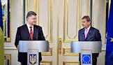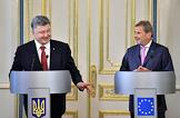Президент Украины Петр Порошенко (слва) и европейский комиссар по вопросам расширения и политики добрососедства Йоханнес Хан (справа) во время встречи.