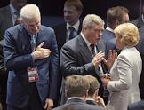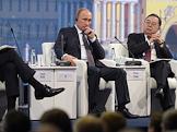 XIX Петербургский международный экономический форум (ПМЭФ) 2015 прошел на территории выставочного комплекса "Ленэкспо". Участники пленарной сессии ПМЭФ.