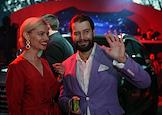 Директор по корпоративным коммуникациям Audi Russia Алексей Кожухов (слева) и журналист Леонид Парфенов (справа) во время презентации нового Audi Q7 в Центре современного искусства "Гараж".