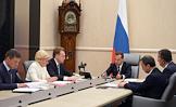 Председатель правительства России Дмитрий Медведев на совещении со своими заместителями в Доме правительства России.