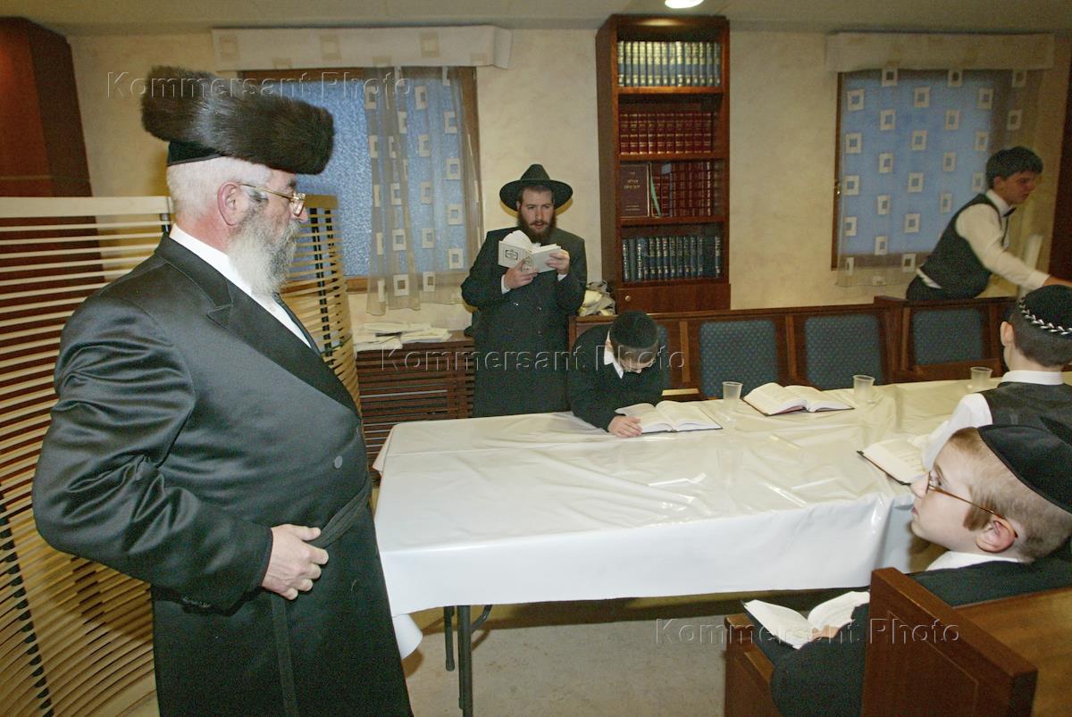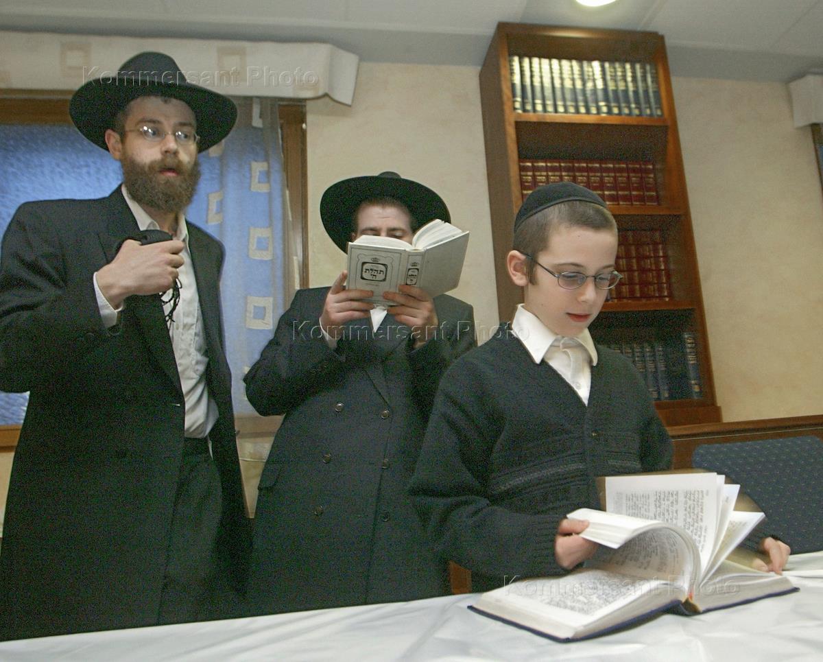 Главный раввин Федерации еврейских общин России Берл Лазар (справа) перед праздничным богослужением в честь праздника еврейской Пасхи - Песах в Еврейском общинном центре.