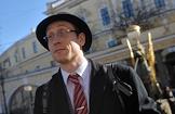 Активист Вольного сетевого сообщества "Диссернет", заявитель по лишению ученых степеней, блогер doct-z Андрей Заякин после заседания диссертационного совета Д 212.354.03 по рассмотрению заявления о лишении ученой степени кандидата экономических наук Сергея Плешкова Сергея и Евгении Зубаревой в Санкт-Петербургском государственном экономическом университете.
