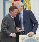 Ректор Санкт-Петербургского государственного политехнического университета, член-корреспондент РАН Андрей Рудской (слева) и вице-президент РАН, ректор Московского государственного университета (МГУ) имени М.В.Ломоносова Виктор Садовничий (справа) перед началом заседания Совета при президенте России по науке и образованию на тему "Новые вызовы и приоритеты развития науки и технологий в Российской Федерации". Заседание прошло в Екатериненском зале Сенатского дворца Кремля.
