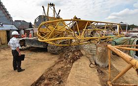 Происшествие на Калужского шоссе в Новой Москве. На шоссе в районе поселка Газопровод рухнул строительный кран. В результате происшествия пострадал один человек, несколько автомобилей были повреждены, движение на Калужского шоссе полностью перекрыто.