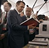 Московский международный книжный фестиваль "Книги России". Руководитель Федерального агентства по печати и массовым коммуникациям (ФАПМК) России Михаил Сеславинский (слева), председатель Государственной думы России Сергей Нарышкин (в центре) во время фестиваля на Красной площади.