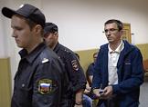 Фигурант уголовного дела о незаконном выводе денежных средств из филиалов ОАО "Межрегиональная распределительная сетевая компания Центра и Северного Кавказа" (МРСК Центра и Северного Кавказа) Александр Пивоваров во время заседания Басманного районного суда.