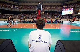 Игра между сборными командами США и России по волейболу.