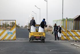 Въезд в аэропорт города. Охранник на пропускном пункте.