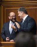 Председатель Европейского парламента Мартин Шульц (слева) и президент Украины Петр Порошенко (справа) во время заседания Верховной Рады Украины.