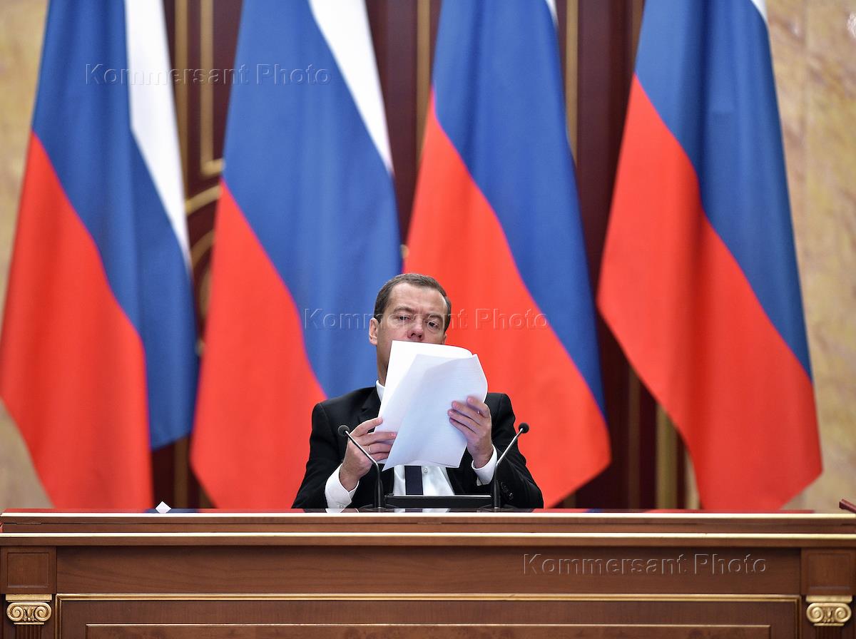Председатель правительства России Дмитрий Медведев во время заседания Правительственной комиссии по использованию информационных технологий для улучшения качества жизни и условий ведения предпринимательской деятельности. Заседание прошло в Доме правительства России.