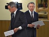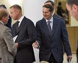 Министр образования и науки России Дмитрий Ливанов (слева) и председатель Государственной думы России Сергей Нарышкин (справа) во время заседания рабочей группы по разработке единой концепции преподавания русского языка и литературы в общеобразовательных организациях. Заседание прошло в Государственной думе России.