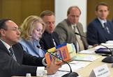Слева направо: председатель комитета Государственной думы России по образованию Вячеслав Никонов, первый заместитель министра образования и науки России Наталья Третьяк и министр образования и науки России Дмитрий Ливанов во время заседания рабочей группы по разработке единой концепции преподавания русского языка и литературы в общеобразовательных организациях. Заседание прошло в Государственной думе России.
