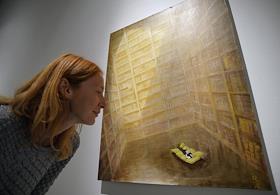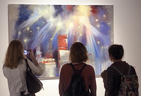 Посетительница на выставке Ивана Разумова "Десять снов о Москве" в галерее "Риджина" на "Винзаводе".
