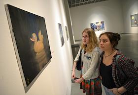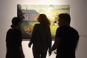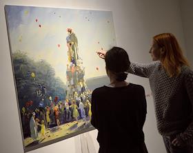 Посетители на выставке Ивана Разумова "Десять снов о Москве" в галерее "Риджина" на "Винзаводе".