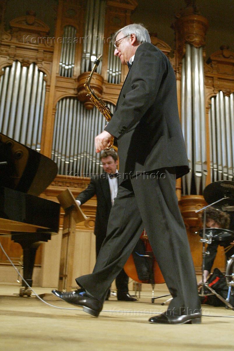 Джазовый музыкант Леонид Пташка (Леон) во время выступления на концерте Георгия Гараняна в Большом зале Консерватории.