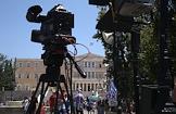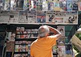 Экономическая ситуация в Афинах. Мужчина у киоска с прессой.