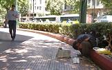 Жанровая фотография. Мужчина просит милостыню на парапете.
