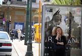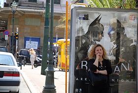 Экономическая ситуация в Афинах. Женщина у рекламного банера.