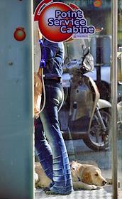 Жанровая фотография. Кабина телефона-автомата. Собака.