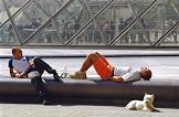 Жанровая фотография. Виды Парижа. Отдыхающие на парапете у пирамиды в Лувре.