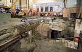 Рабочие во время работы по замене эскалатора и реконструкции вестибюля станции "Бауманская" московского метрополитена.