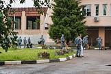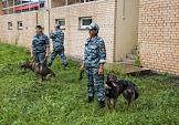 Служащие кинологического центра МВД России (ЗЦКС ГУ МВД России по г. Москве) со служебными собаками на территории центра.