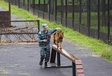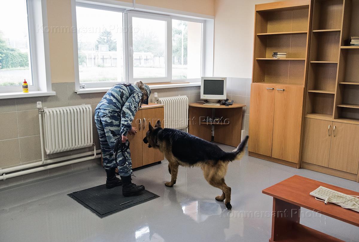 Кинолог с собакой в кинологическом центре МВД России (ЗЦКС ГУ МВД России по г. Москве).