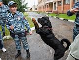 Кинологи с собакой в кинологическом центре МВД России (ЗЦКС ГУ МВД России по г. Москве).