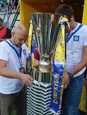 XII Суперкубок Украины по футболу. Матч между командами "Динамо" (Киев) и "Шахтер" (Донецк). Игроки команды "Шахтер" после матча. Главный тренер команды "Шахтер" Мирча Луческу во время матча.